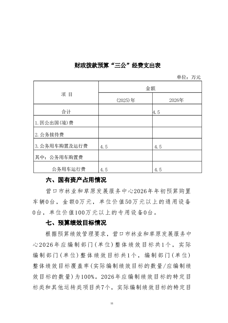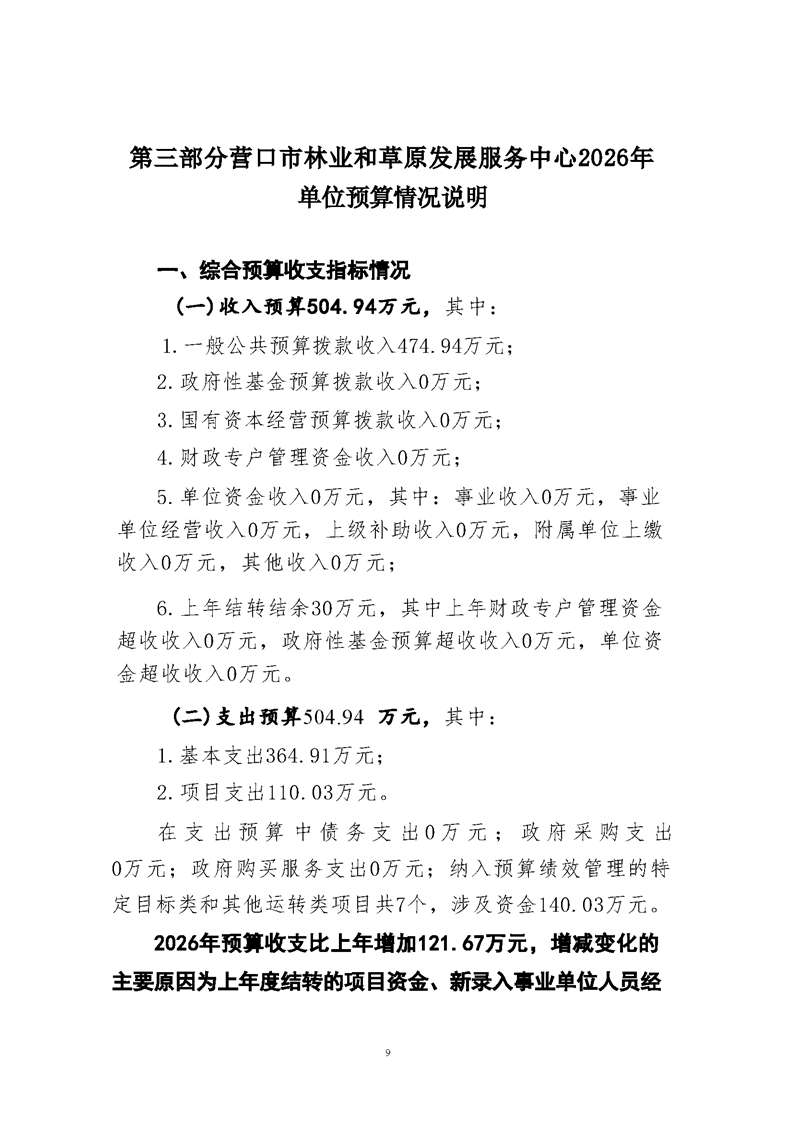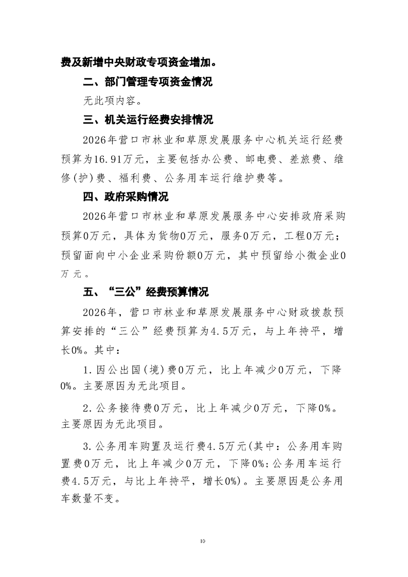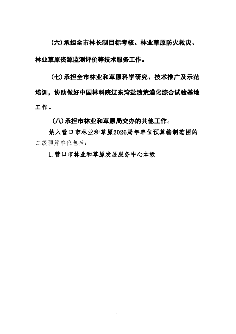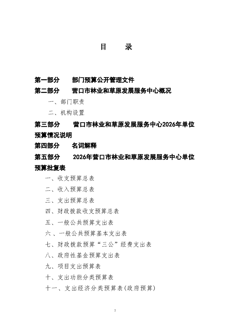 营口市林业和草原发展服务中心2026年度单位预算