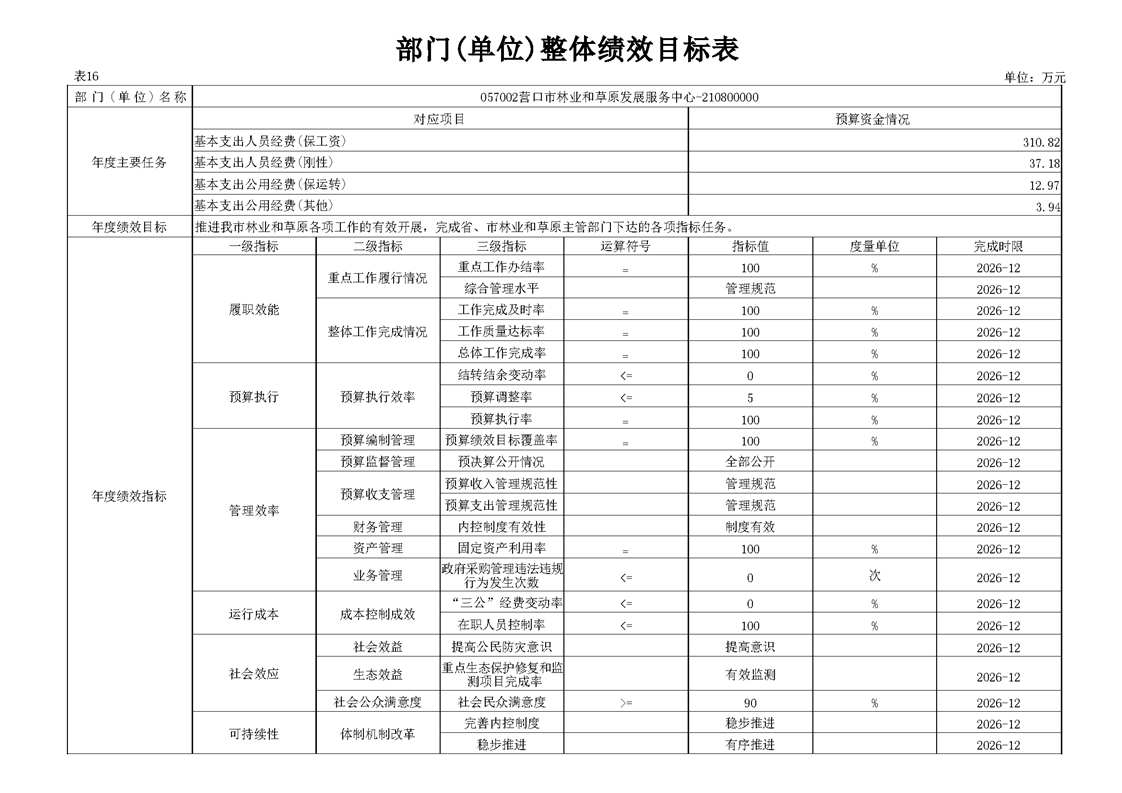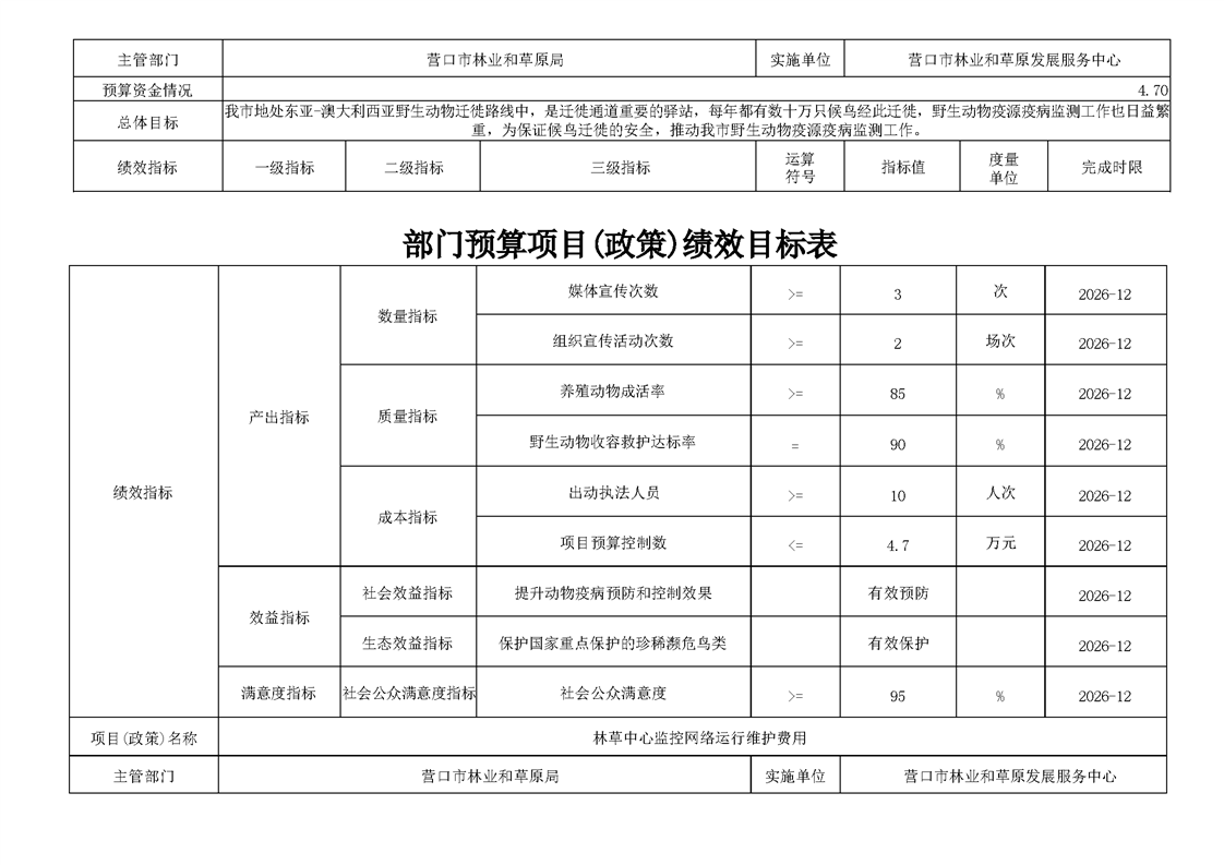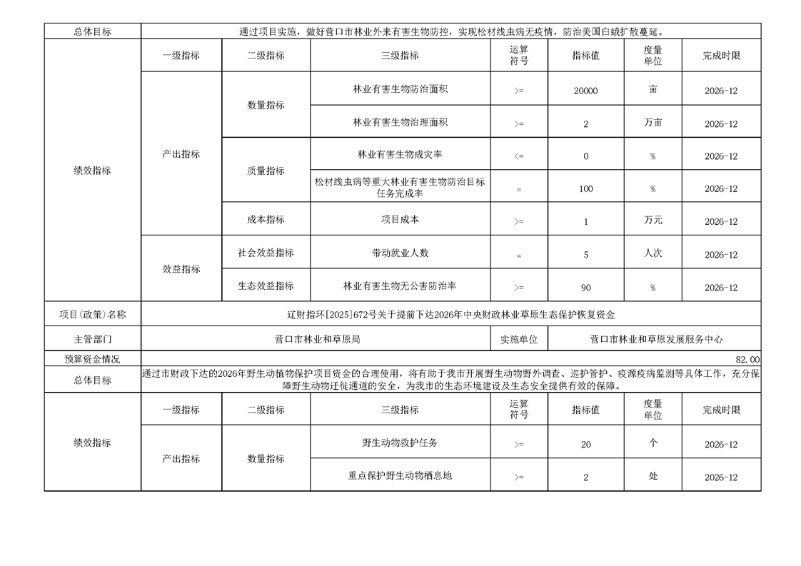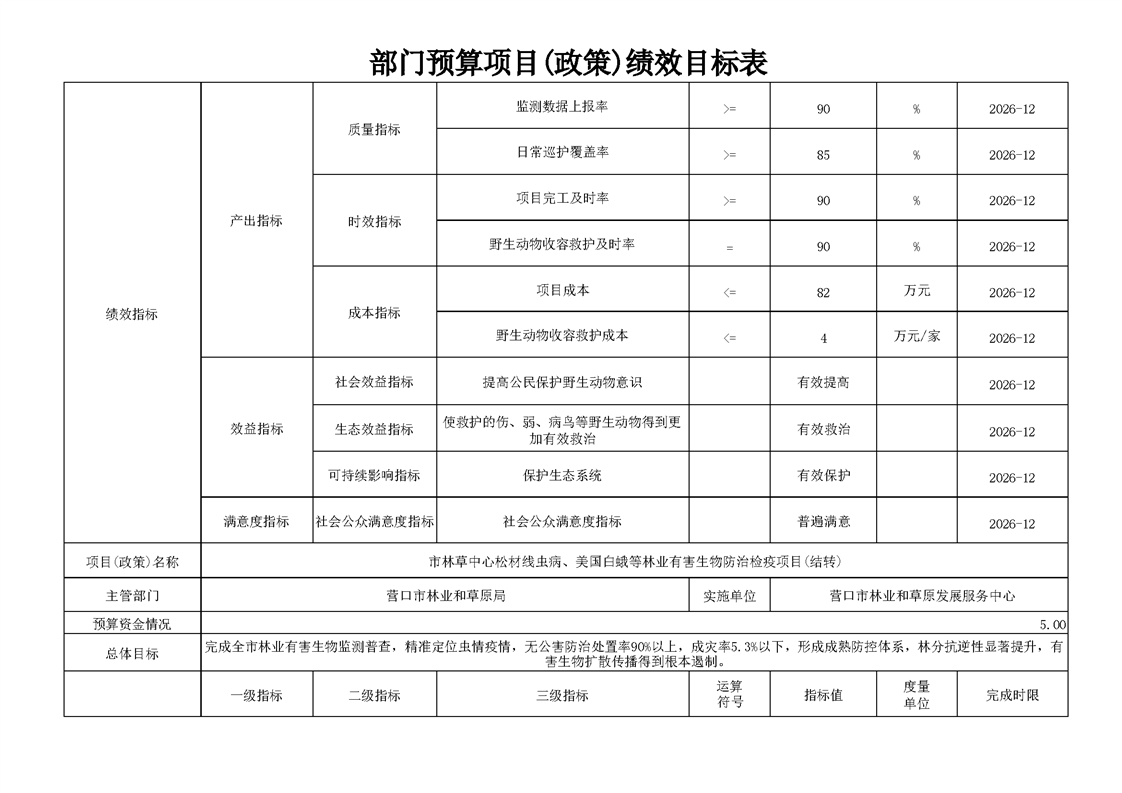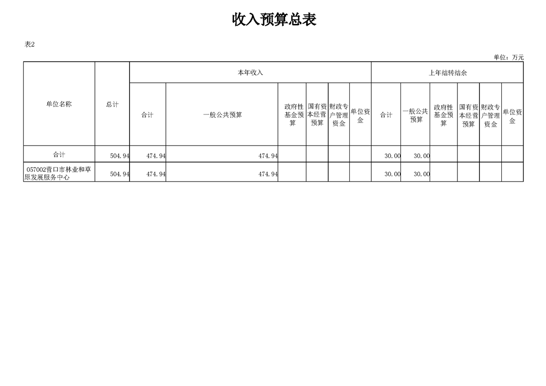 营口市林业和草原发展服务中心2026年度单位预算