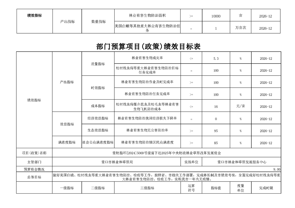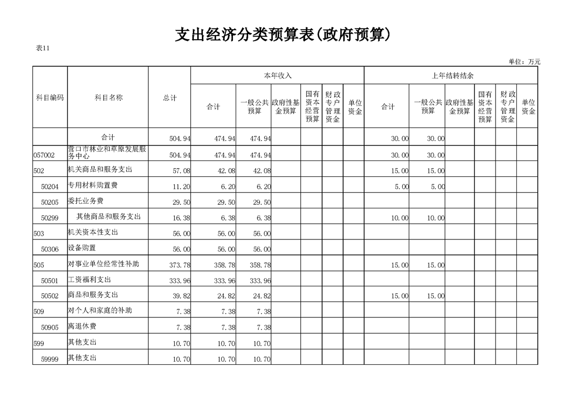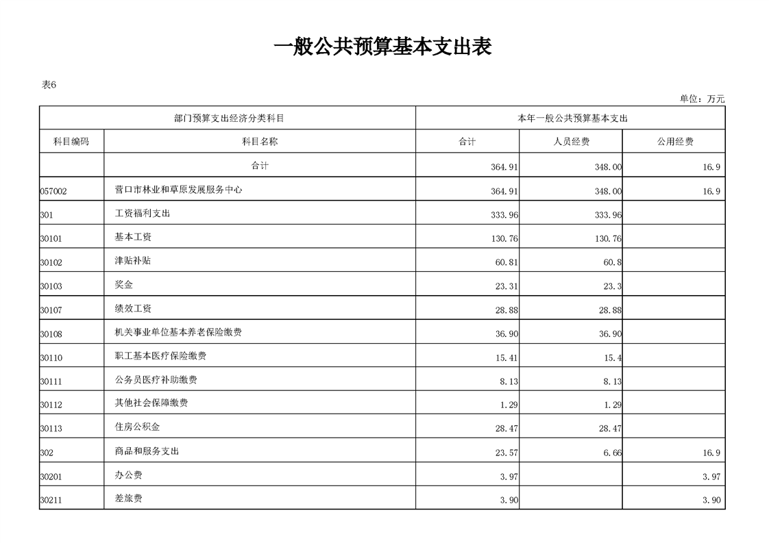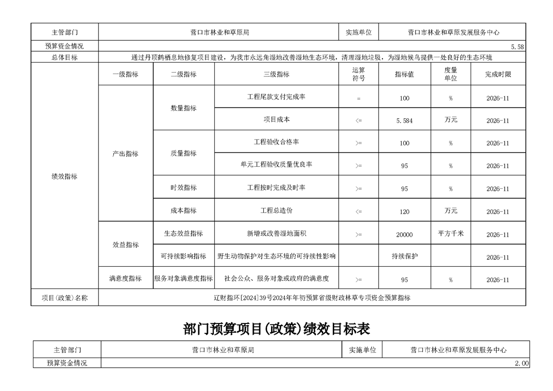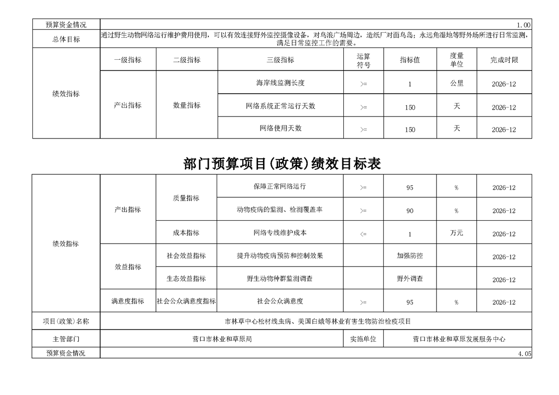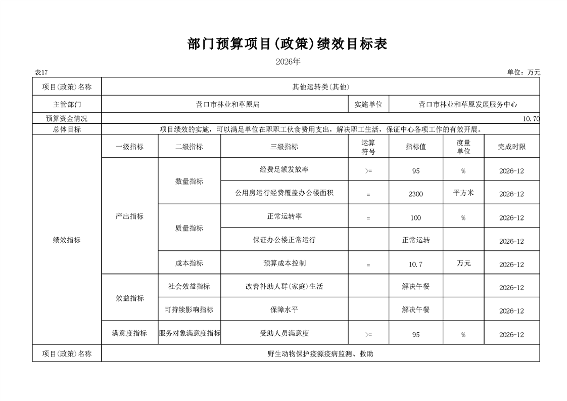 营口市林业和草原发展服务中心2026年度单位预算
