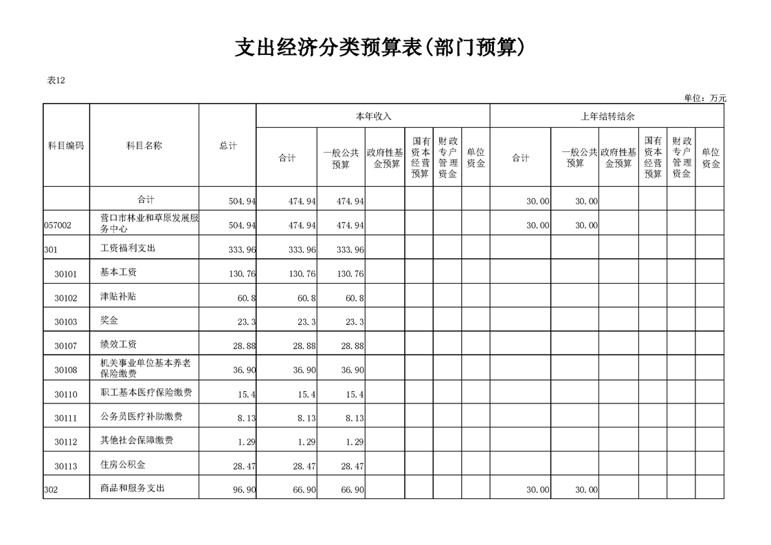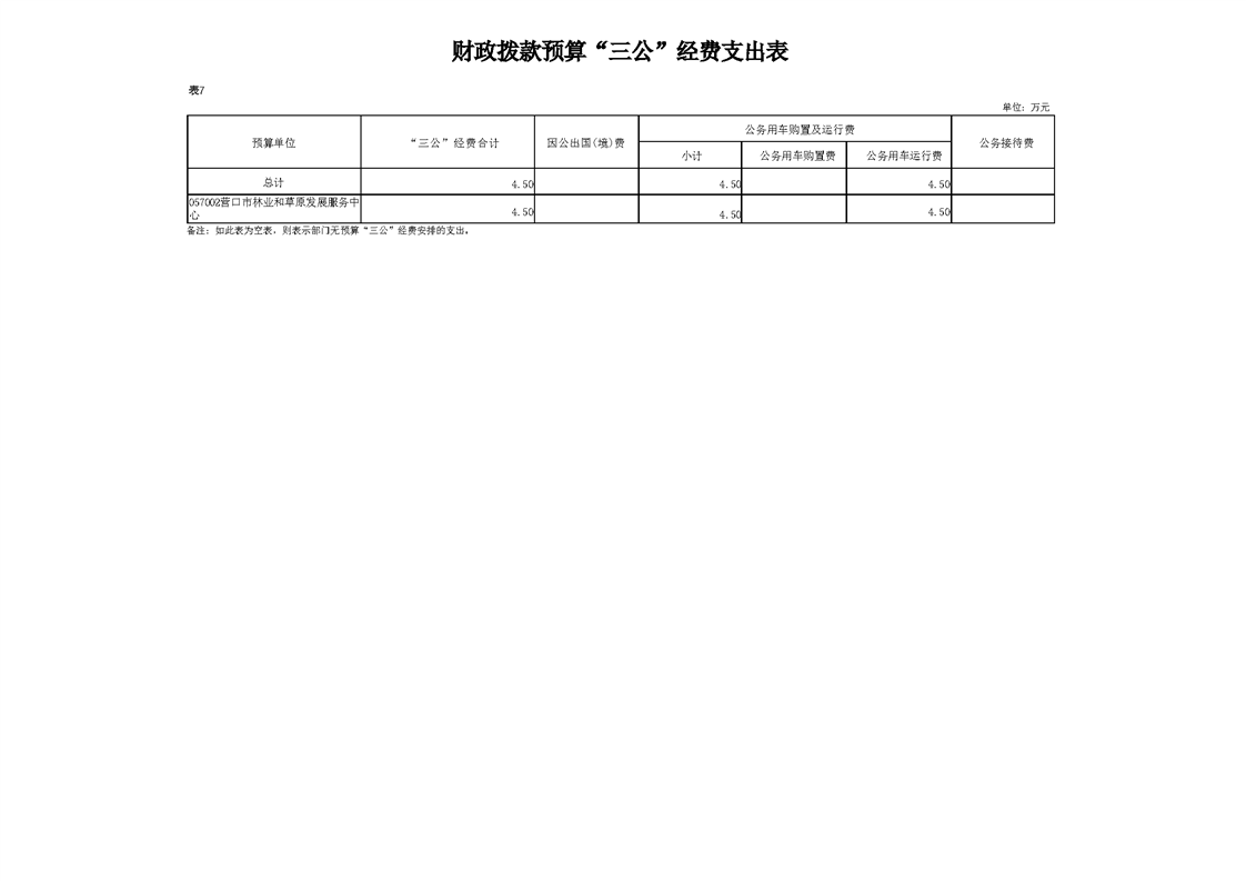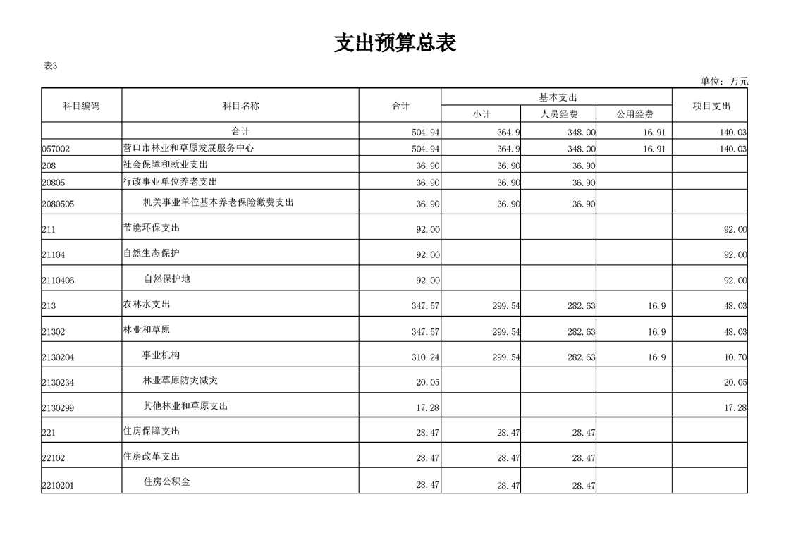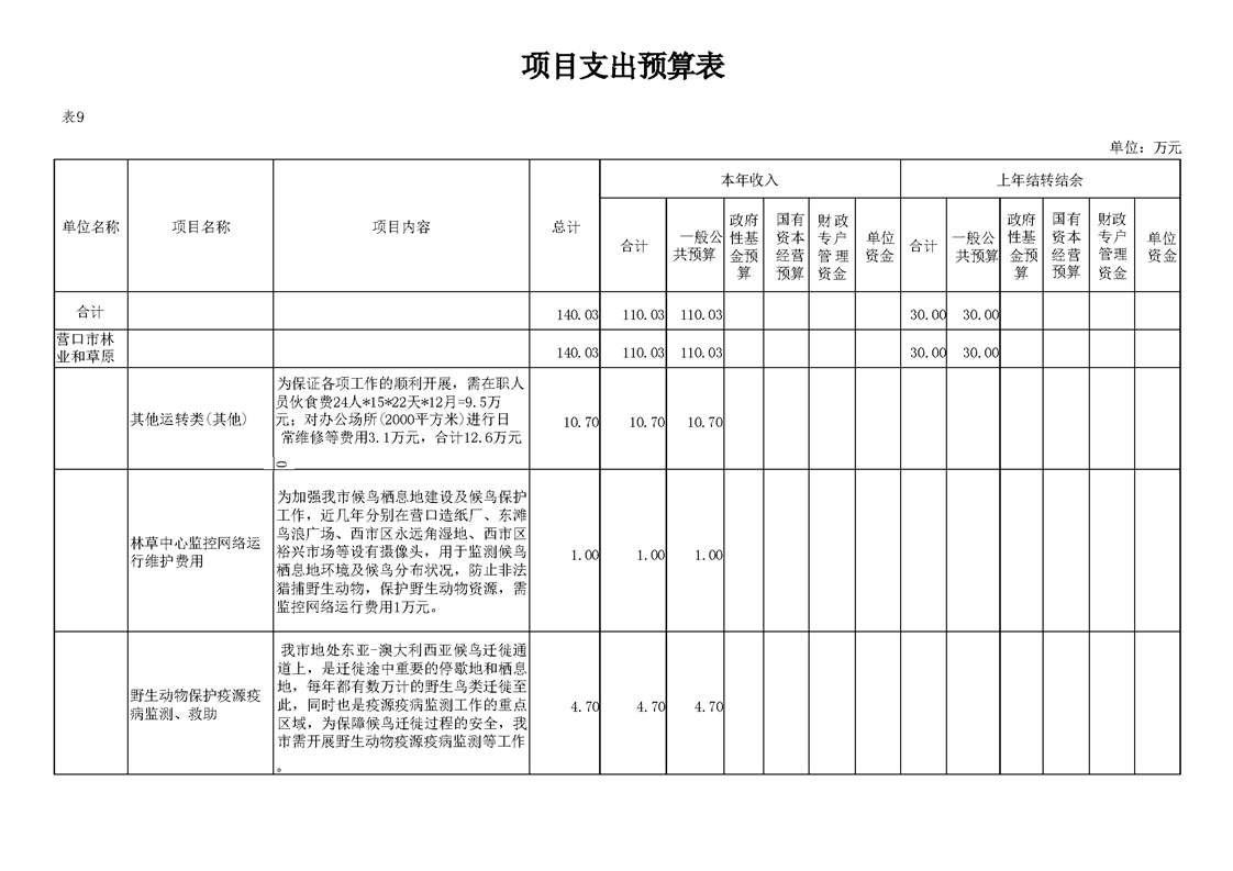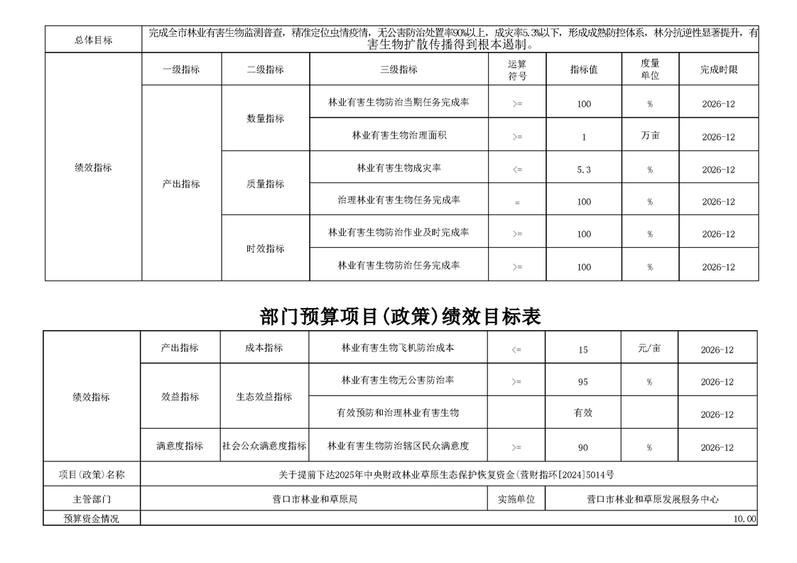 营口市林业和草原发展服务中心2026年度单位预算