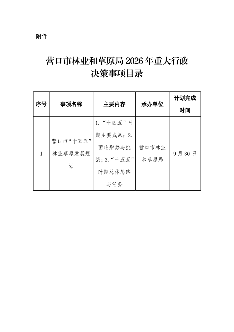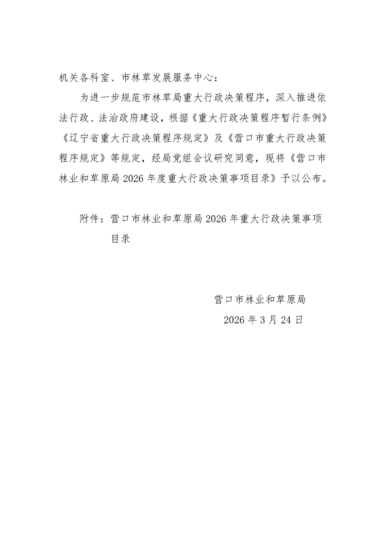 关于印发营口市林业和草原局2026年重大行政决策事项目录的通知